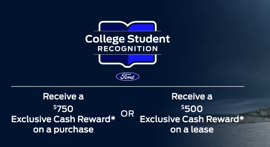You've worked hard in school, now let your new Ford drive you to your dream job! $500 bonus cash for current college or trade school students or alumni within 3 years of graduation date towards the purchase or lease of an eligible/select new 2025/2026 Ford or Lincoln vehicle! Contact us at Steet Ponte Ford to find out more, or stop down for a test drive!